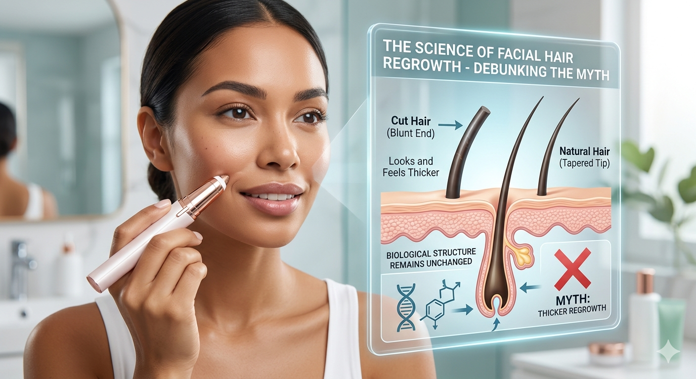 সংক্ষিপ্ত উত্তর হল না: ফেসিয়াল হেয়ার রিমুভার ব্যবহার করলে আপনার চুলের জৈবিক গঠন, বেধ বা রঙ পরিবর্তন হয় না। যদিও অনেক লোক অপসারণের পরে তাদের চুলগুলিকে আরও মোটা বলে মনে করে, এটি চুল কাটা বা তোলার পদ্ধতির কারণে সৃষ্ট একটি সাধারণ শারীরবৃত্তীয় বিভ্রম। বৈজ্ঞানিক প্রমাণ এটি নিশ্চিত করে মুখের চুল অপসারণ শেভিং, এপিলেশন বা ট্রিমিং-এর মাধ্যমেই হোক- শুধুমাত্র ত্বকের উপরিভাগের চুলের মৃত অংশকে প্রভাবিত করে বা অস্থায়ীভাবে লোমকূপকে সরিয়ে দেয়, ডিএনএ বা বৃদ্ধির ধরণ পরিবর্তন না করেই। চুলের ফলিকল নিজেই